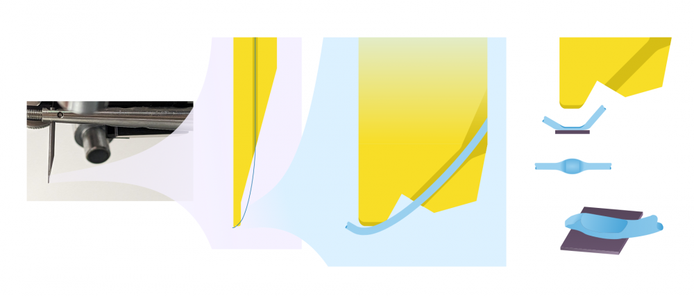 Normally when the wedge moves to loop height, the first bond has to withstand extra stress because the wire is pulled from it. This can make the bond weaker or even loosen it completely. To avoid this, a kink can be made just after the first bond, before making the loop. This is done by adjusting the kink height and reverse dials.